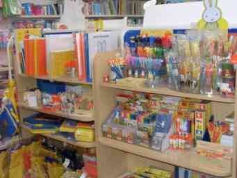 ■キャラクター文具コーナー 左の写真はディック・ブルーナのミッフィーのコーナーです。この他に、ハッチポッチステーション、ガスパード&リサ、キティ、TERUTERU天使、、スヌーピー、ディズニー、とっとこハム太郎、みかんぼうや、などのコーナーがあります。 男の子向けにはランバード、スーパースター、コンバースのコーナーがあります。 |